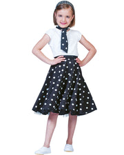 50er Jahre Kostüm - Kinder Tellerrock mit Halstuch | Schwarz Weiß