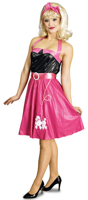In diesem 60er Jahre Kleid fühlt sich nicht nur Mary Lou pudelwohl zu Karneval, Fasching oder der Mottoparty! Das schwarz pinke Kleid ist am Rock mit kleinenweißen Punkten und einem weißen Pudel an der Leine verziert. Neben dem Sixties Petticoat Kleid wird noch ein pinkfarbener Gürtel und ein pinkes Haarband geliefert. Das Pünktchen Kleid wird als Neckholder getragen. Damit rocken Sie jede Tanzfläche!