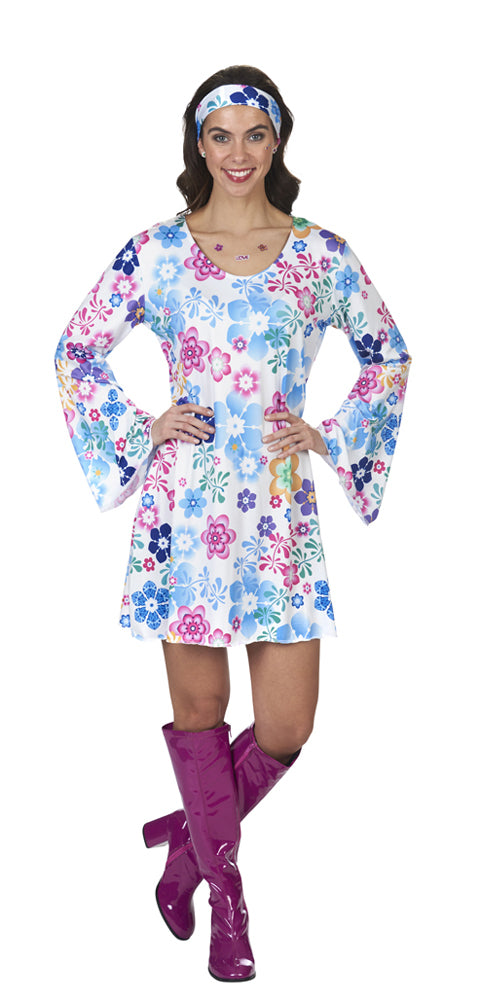 Hippie Flower Power Damen Kostüm "Hope" | Weiß Bunt