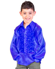 70er Jahre Satin Rüschenhemd "Johnny" für Kinder | Blau