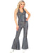 70er Jahre Disco Overall für Damen - Schwarz Silber | 70s Glitzer Show Party Kostüm