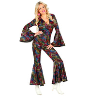 Dieses atemberaubende Disco-Damenkostüm der 60er, 70er und Flower-Power Zeit macht nicht nur an Karneval eine gute Figur. Auch auf einer Schlagerparty, bei Festivals und anderen Mottoparties sind Sie damit immer gut angezogen.