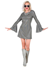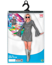 70er Jahre Disco Kostüm für Damen | Schwarz Silber