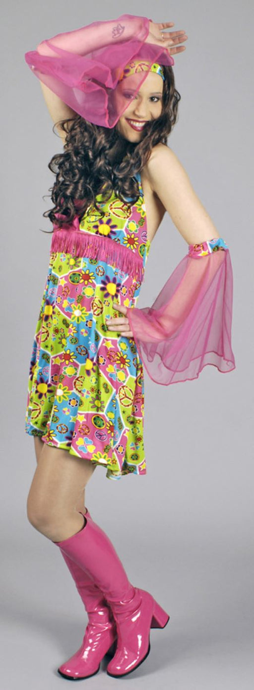 Verwandeln Sie sich in ein richtiges Hippie Girl der 70er 80er Jahre mit diesem Traum in Pink! Das Kostüm besteht aus einem Mini-Kleid mit langen ...