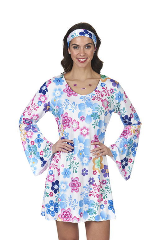 Hippie Flower Power Damen Kostüm "Hope" | Weiß Bunt