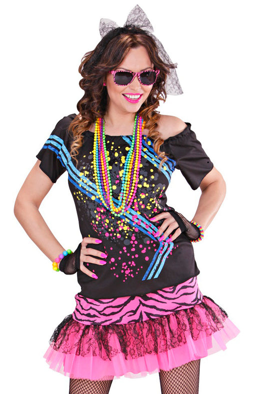 Mit diesem Outfit machen Sie eine Zeitreise in die 80er Jahre. Popstars und Sternchen funkelten in knappen Outfits um die Wette und dieses Kostümse...
