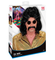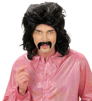 70er Jahre Perücke "Mark" mit Schnurrbart für Herren - Schwarz