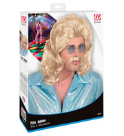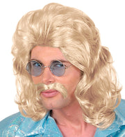 70er Jahre Perücke "Tommy" mit Schnurrbart für Herren - Blond