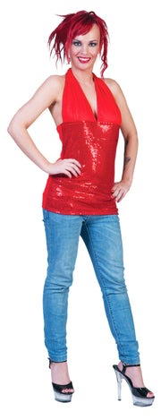 Disco Party Neckholder Top Glitzer Rot