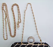 Die Clutch "Pearl" hat ein verspieltes Design mit vielen kleinen Perlen und wird mit einem strassbesetzten Clipverschluss in Ringform geschlossen. Sie hat ein großes Hauptfach und wird mit zwei abnehmbaren Ketten - einer kurzen und einer langen zum Umhängen - geliefert.
