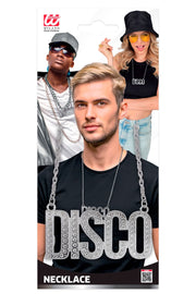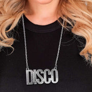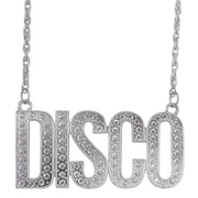 Diese silberfarbene Halskette mit dem auffälligen Schriftzug „DISCO“ ist das perfekte Accessoire für glamouröse 70er-Jahre-, Disco- und Party-Kostüme. Der große Buchstabenanhänger ist mit funkelnden Steinchen besetzt und sorgt für einen glänzenden Auftritt auf der Tanzfläche, bei Mottopartys oder auf Festivals. Die Kombination aus klarer Schrift, Glitzeroptik und silbernem Finish macht die Kette zu einem echten Hingucker.