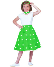 50er Jahre Kostüm - Kinder Tellerrock mit Halstuch | Grün Weiß