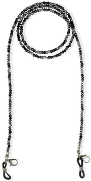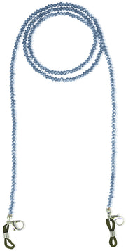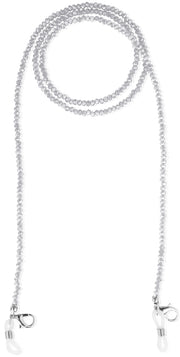 Die ca. 78 cm langen Ketten sind mit unzähligen, funkelnden Glaskristallperlen besetzt. Mit den Loops oder mit dem Karabiner kann die Maskenkette wahlweise mit der Brille oder auch mit einer Mundschutzmaske kombiniert getragen werden.
