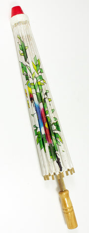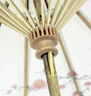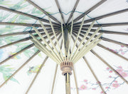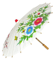 Das Schirmdach ist aus weißem Papier und mit bezaubernden Blumen und Kirschblüten bedruckt. Der Stock und der Griff des Schirms sind aus Holz gefertigt. Mit einer Gesamtlänge von ca. 43,0 cm und einem Schirmumfang von ca. 60,0 cm haben Sie ein tolles und handliches Zubehör für viele Gelegenheiten.
