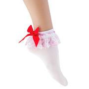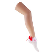 Damen Rüschenstrümpfe mit Schleife und Herzen | Weiß Rot