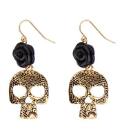 Day of the Dead Ohrringe "Totenkopf und Rose" | Schwarz Gold