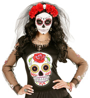Die goldenen Ohrhänger besitzen jeweils eine schwarze Rose und einen Totenkopfschädel als Anhänger. Die goldfarbene Schädel sind mit Ornamenten verziert und wirken dadurch besonders edel und passen zu vielen Kostümen. Ein faszinierendes Accessoire für Ihr Kostüm als schaurige Voodoopriesterin, furchteinflößende böse Königin und Day of the Dead Kostümideen.