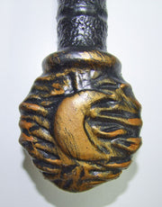 Drachen finden wir in vielen Märchen und Geschichten. Meistens sind sie es, die ganze Dörfer zerstören, Vieherden auslöschen oder Jungfrauen zum Frühstück verspeisen wollen! Doch meistens gibt es in diesen Märchen auch einen Helden in einer Ritterrüstung! Und wenn dieser die Prinzessin vor dem Ungeheuer retten will, kann er das natürlich nicht mit bloßen Händen tun. Daher braucht unser Retter in der Not einen Drachentöter. In diesem Fall ist es unser sagenumwobenes Schwert mit wellenförmiger Klinge und Schlangenkopf als Griff! Das Ritterschwert ist am Knauf mit einem sichelförmigen Mond verziert und liegt gut in der Hand.