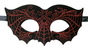Fledermaus Augenmaske - Schwarz mit rotem Glitzer Spinnennetz