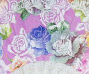 Glitzer Handfächer mit Rosen - Weiß / Lila