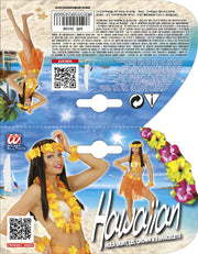 Hawaii-Set Bastrock mit Blumengürtel, Halskette, Stirnband, 2 Armbänder | Orange/Gelb