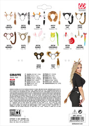 Haarreifen mit Giraffenohren und einem Schwänzchen. Die Komponenten sind