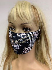 Schöne Behelfsmaske / Mund Nasen Bedeckung für Erwachsene und große Kinder mit verschiedenen, modernen Fashion Motiven. Die doppellagigen Stoffmasken sind dünn gearbeitet und daher super auch für wärmere Tage und den Innenbereich geeignet.