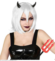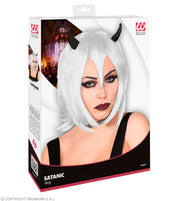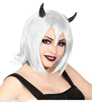 Perücke "Teufelin" mit schwarzen Hörnern | Weiß
