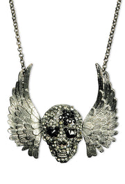 Silberne Halskette mit Strass Totenkopf und Engelsflügeln