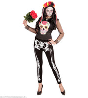 Ihnen fehlt noch das ideale Accessoire zu Ihrem Horror oder Gruselkostüm wie Zombie Skelett? Mit dieser tollen Leggings können Sie Ihr Outfit für Party, Cosplay, Halloween und Karneval perfekt abrunden. Die Hose ist in zwei Größen erhältlich und aus einem leicht glänzenden Stretch-Material hergestellt. Ein Skelettdruck in Weiß auf der Vorderseite der Hose zieht alle Blicke auf sich und Sie runden so Ihr Partyoutfit ideal ab.