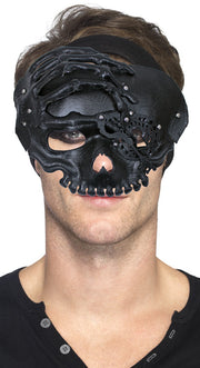 Steampunk Totenkopf Halbmaske mit Schlüssel - Schwarz