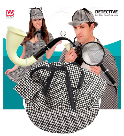 Vollständige Details anzeigenDetektiv Kostüm Set - 3-tlg. | Mütze Lupe Pfeife