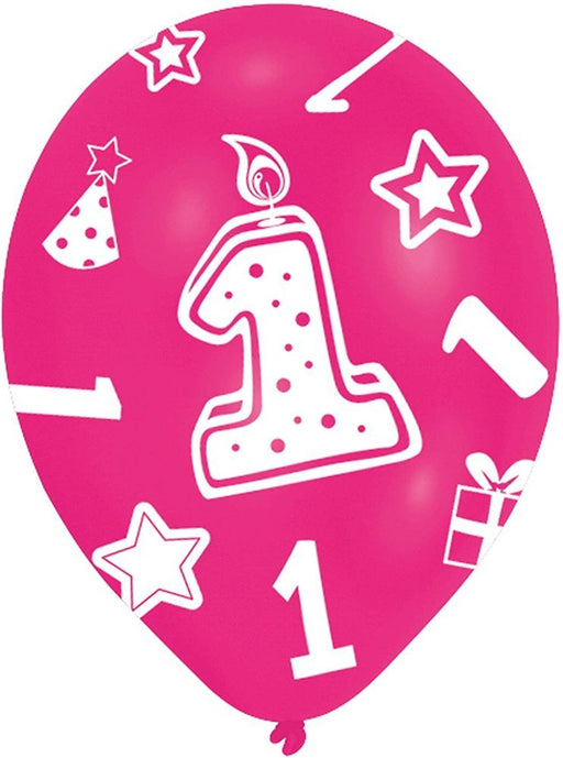 "1. Geburtstag" Latexballons Luftballons 27,5 cm Dekoration Party Mädchen - 6 Stück Pink