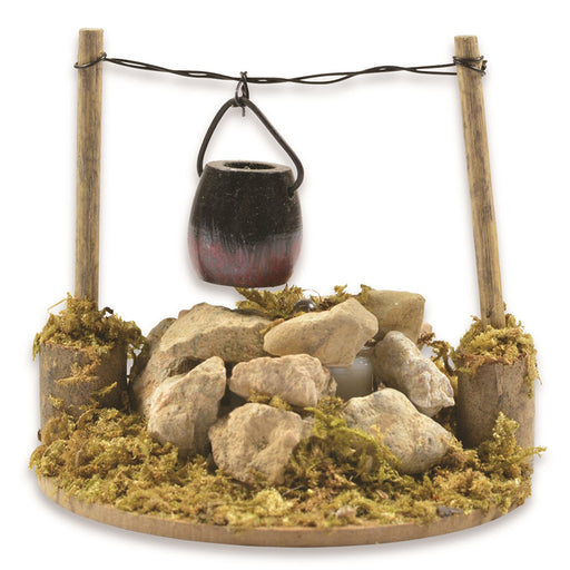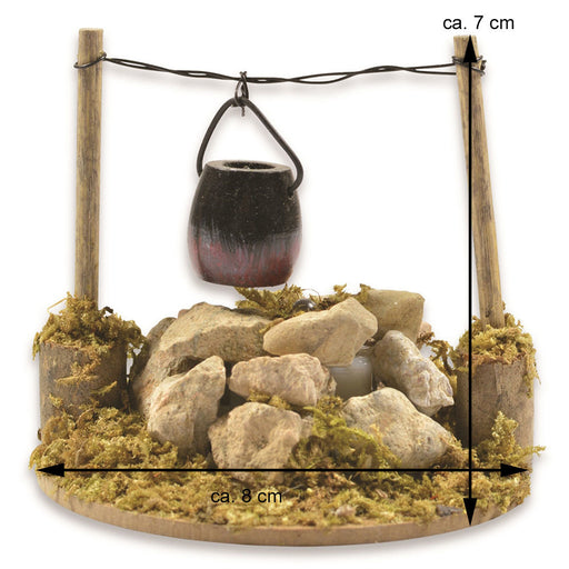 Die liebevoll gestaltete Feuerstelle mit Kessel von Riffelmacher ist ein detailreiches Zubehör für Weihnachtskrippen, Modellbau-Landschaften oder w...
