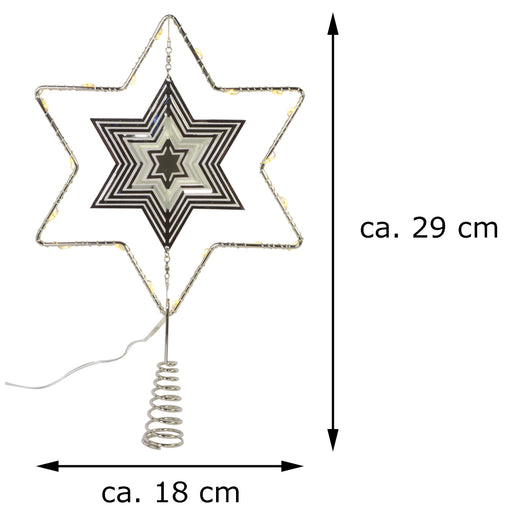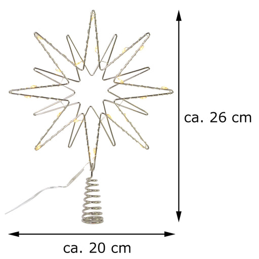 Vollständige Details anzeigenRiffelmacher Baumspitze Stern mit LED Beleuchtung 17754 | Silber 18 x 29 cm