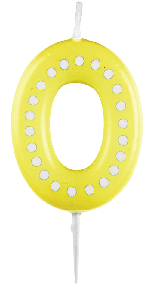 Vollständige Details anzeigenZahlenkerze mit Punkten 6,5cm | Gelb # 0