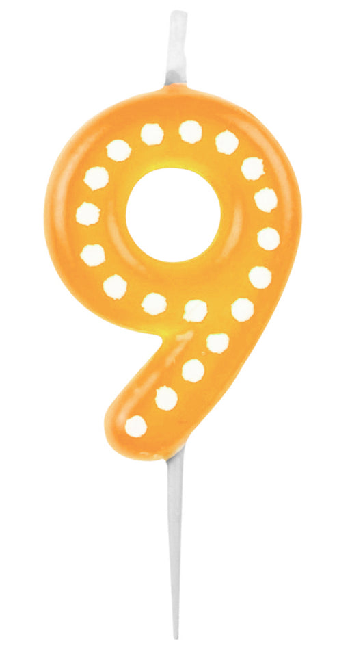 Vollständige Details anzeigenZahlenkerze mit Punkten 6,5cm | Orange # 9