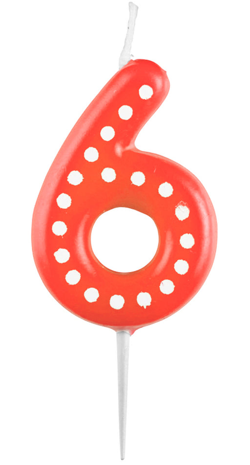 Vollständige Details anzeigenZahlenkerze mit Punkten 6,5cm | Rot # 6