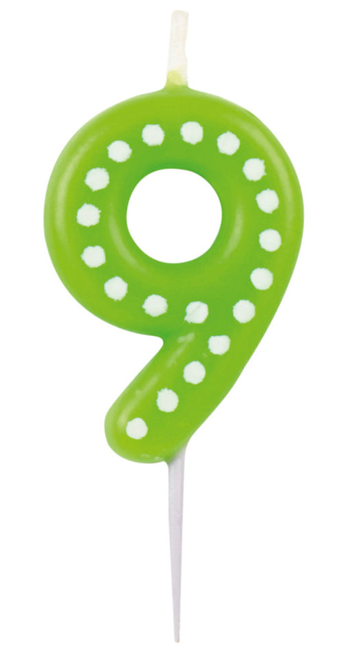 Vollständige Details anzeigenZahlenkerze mit Punkten 6,5cm | Gr ün # 9