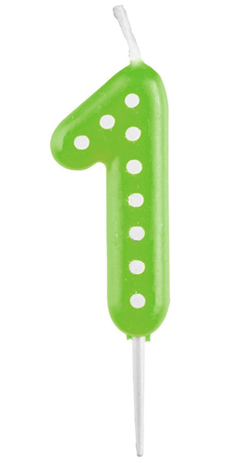 Vollständige Details anzeigenZahlenkerze mit Punkten 6,5cm | Gr ün # 1
