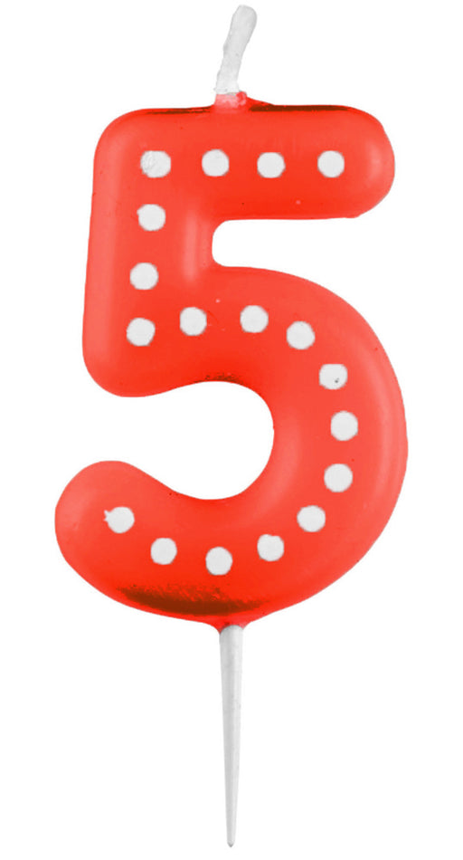 Vollständige Details anzeigenZahlenkerze mit Punkten 6,5cm | Rot # 5