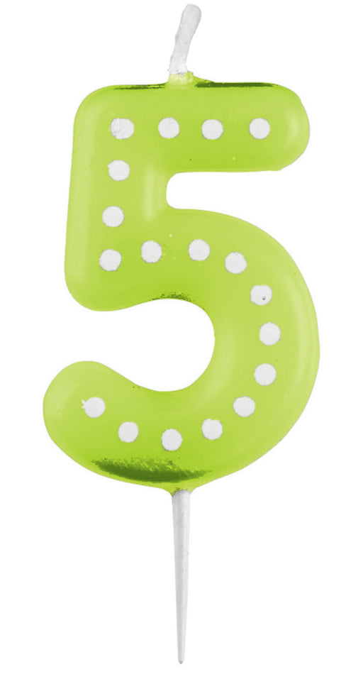 Vollständige Details anzeigenZahlenkerze mit Punkten 6,5cm | Gr ün # 5