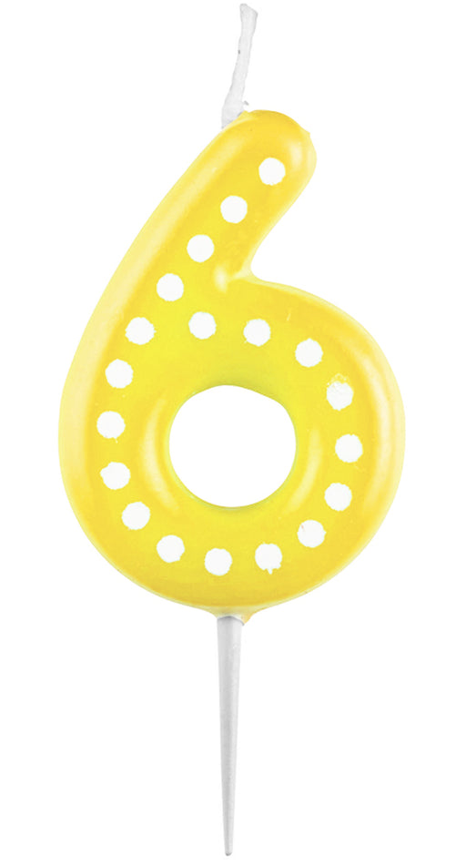 Vollständige Details anzeigenZahlenkerze mit Punkten 6,5cm | Gelb # 6