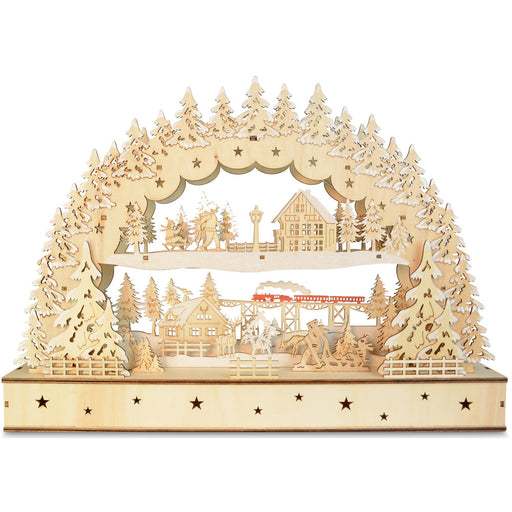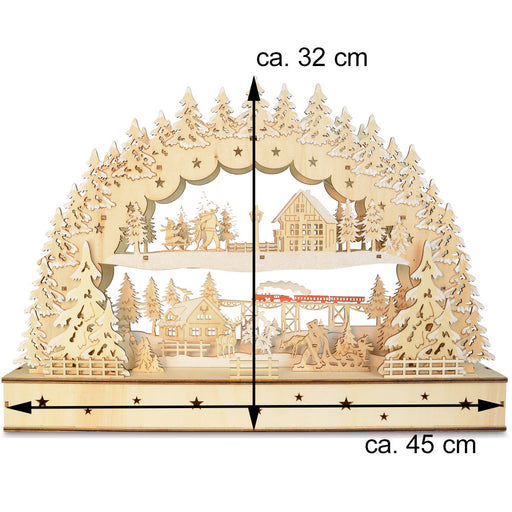 Vollständige Details anzeigenSchwibbogen "Dorflandschaft mit Zug" 45 x 32 cm - LED Fensterleuchter mit Timer | 76119
