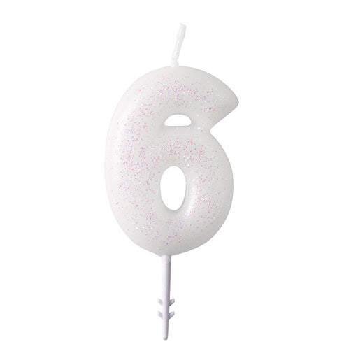 Vollständige Details anzeigenZahlen Geburtstagskerze Glitzer Weiß Rosa 6,5cm | Zahl 6