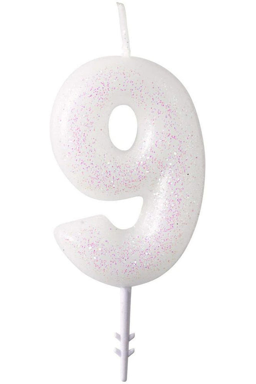 Vollständige Details anzeigenZahlen Geburtstagskerze Glitzer Weiß Rosa 6,5cm | Zahl 9