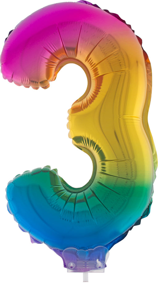 Vollständige Details anzeigenZahlen Folienballon 41 cm mit Stab - Regenbogen Zahl 3