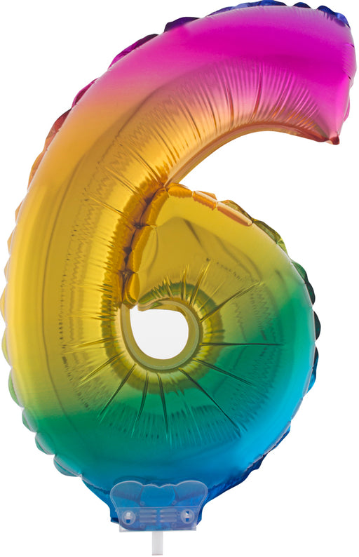 Vollständige Details anzeigenZahlen Folienballon 41 cm mit Stab - Regenbogen Zahl 6