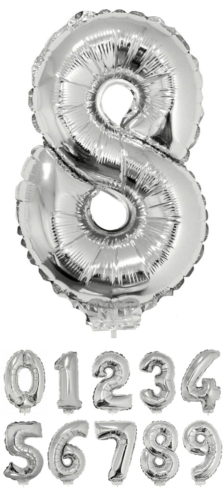 Vollständige Details anzeigenZahlen Folienballon 41 cm mit Stab - Silber | Dekoration Geburtstag Jahrestag