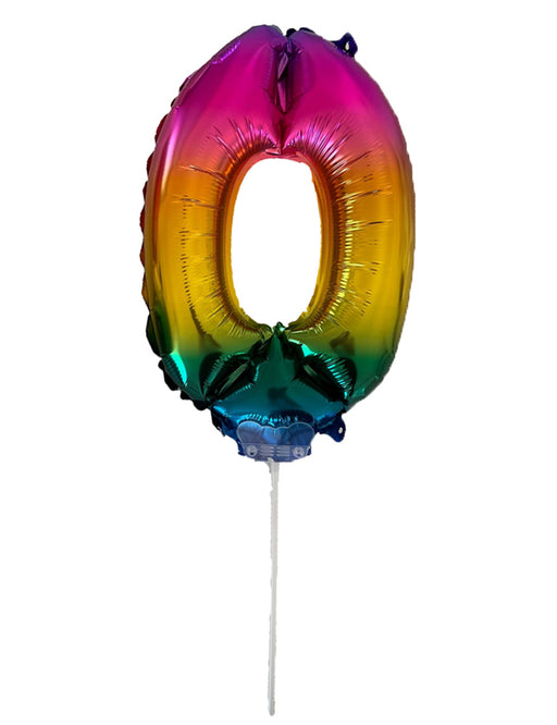 Vollständige Details anzeigenZahlen Folienballon 41 cm mit Stab - Regenbogen Zahl 0